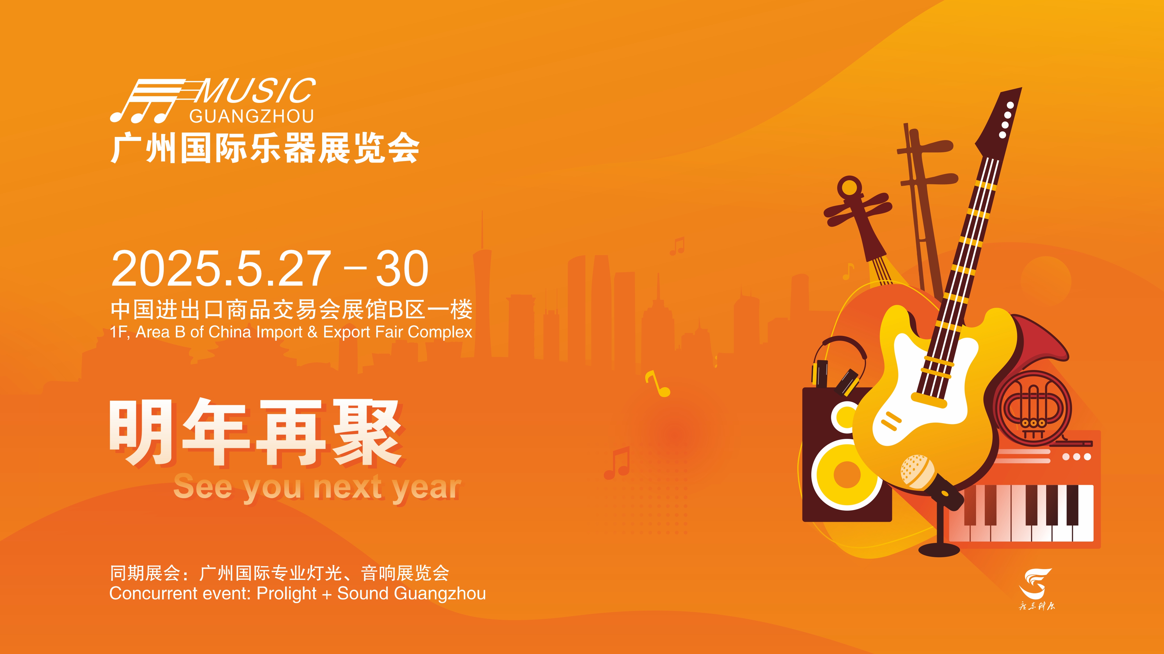 音乐的魅力永不止步。2025广州国际乐器展将继续努力,不断创新和提升,与大家于2025年5月27-30日在广交会展馆B区再聚!