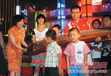 关杰女士向大连阳光溢鸿儿童村的孩子们赠送一把古筝