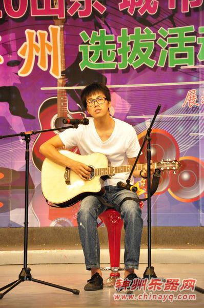 8月6日讯 2010山东城市形象大使滨州赛区海选正在进行中,19的选手杨康康堪称吉他达人,自弹自唱的松花江>声音纯美,颇具校园歌手的风范儿。