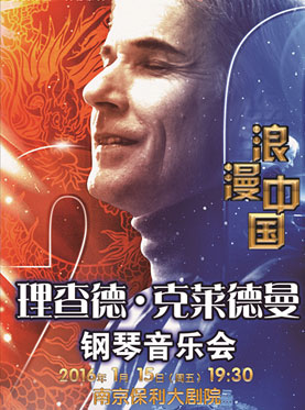 2016年1月15日,理查德·克莱德曼新年演奏会将为南京乐迷响起。钢琴王子将会演奏众多脍炙人口的钢琴佳作,囊括浪漫、爵士、摇滚等多种曲风,其中还有中国观众极为熟悉的《梁祝》、《花心》、《一条大河》等中国名曲,且都是由他亲自改编完成的钢琴曲,当中国式旋律碰上黑白琴键,让更多爱乐者有机会现场欣赏到原汁原味的经典之作。