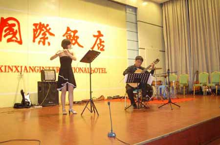 音乐会的高潮,是侯国良偕同夫人杜化丽的联袂演出,《天鹅》是我们熟悉并为之感动的优雅、温柔的大提琴曲,它出自圣桑的管弦乐《动物狂欢节》,经由改编成吉它二重奏。《动物狂欢节》由十四首独立的短小乐曲组成,《天鹅》是第十三首,它不仅是一首大家所熟悉的脍灸入口的名曲,也是作者在这部作品中唯一允许在他生前叫人演出的乐曲,被视作圣桑的代表作品,这首大提琴曲被改编成各种乐器的独奏曲,甚至被改编为芭蕾舞《天鹅之死》。随之的三重奏《化装舞会》由特邀嘉宾刘鸿、侯国良和杜化丽共同演奏,热情奔放的探戈将音乐会推向高潮,《化妆舞会》探戈舞曲的吉它改编曲,由乌拉圭作曲家马托斯.罗德里兹1915年创作的这首乐曲被称为“不朽的探戈名曲”。最早的唱片在1917年录制,第一次世界大战结束后不胫而走,传遍全球。