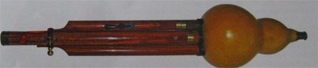 这款葫芦丝有一个特殊的设计,就是在副管和弦音加一键。该键可以在磁铁和弹簧的作用下,需要打开时打开不需用时关闭,大大增强了小指在演奏时灵活性,使演奏更方便。