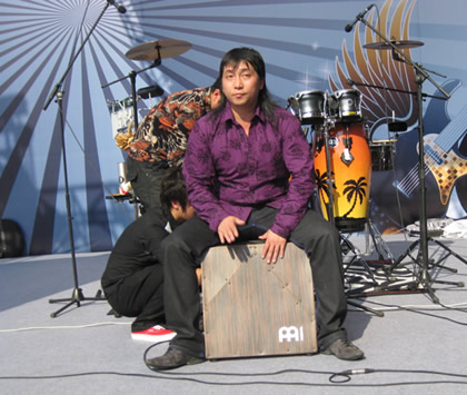 王宏涛向大家介绍了木箱风鼓,它是由德国生产,有高音和低音之分,同时具备有爵士鼓的功能,也就是说,它可以代替爵士鼓,这种鼓很容易学,非常适合初学者。