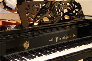 【神州乐器网讯】上海乐器展与国际接轨,不单单看民族品牌的风采,展出的国际产品的尊贵也是不可忽视的,钢琴上的徽章,显示出贝森朵夫钢琴的独特性。