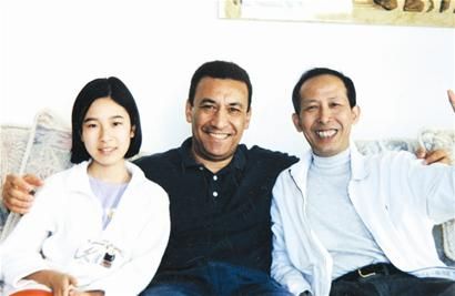 和女儿在一起。中间是刘明坚的提琴老师