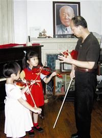 刘明坚在家中执导提琴课
